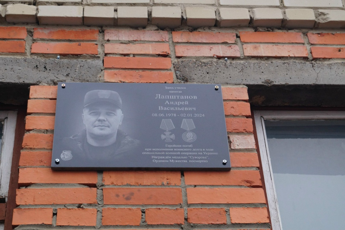 9 декабря в школе №1 города Каменки состоялось открытие мемориальной доски, посвященной памяти Андрея Лапштанова. Он погиб при исполнении воинского долга в ходе Специальной военной операции. Награжден медалью Суворова, орденом Мужества посмертно.