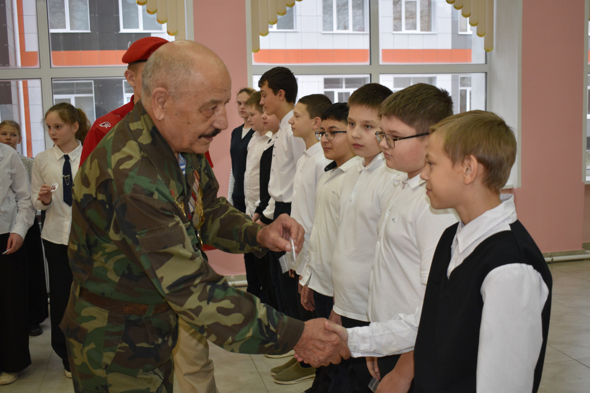 После принятия присяги Борис Сайфутдинов вручил юнармейцам нагрудные значки, пожелал им быть примером в патриотических акциях, успехов в учебе и спорте. Он также поблагодарил учителей за участие в сборе гуманитарной помощи для бойцов СВО.