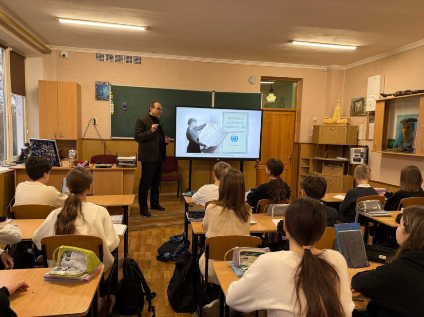 12 декабря в Севастополе член Севастопольского регионального отделения «БОЕВОГО БРАТСТВА», депутат Ленинского муниципального округа Антон Пляскин провёл урок мужества для учеников школы № 45, посвященный Дню Конституции.