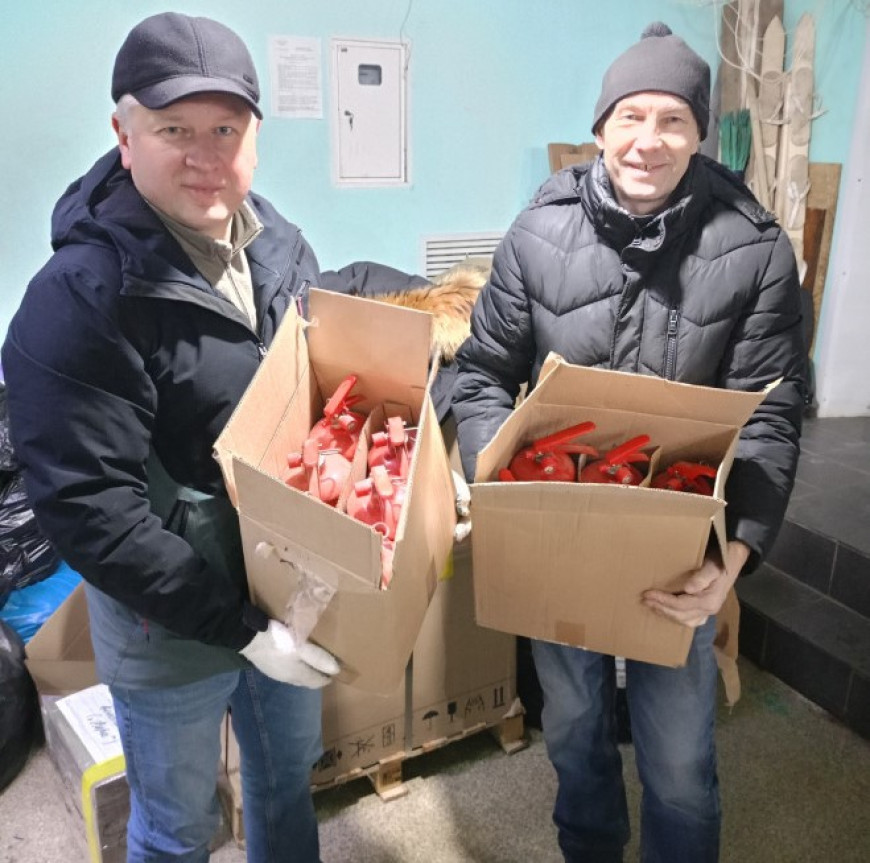 23 декабря в рамках проекта организации “СВОИх не бросаем” в пункт сбора гуманитарной помощи организации “Твори добро” доставлены огнетушители для отправки в зону СВО.
