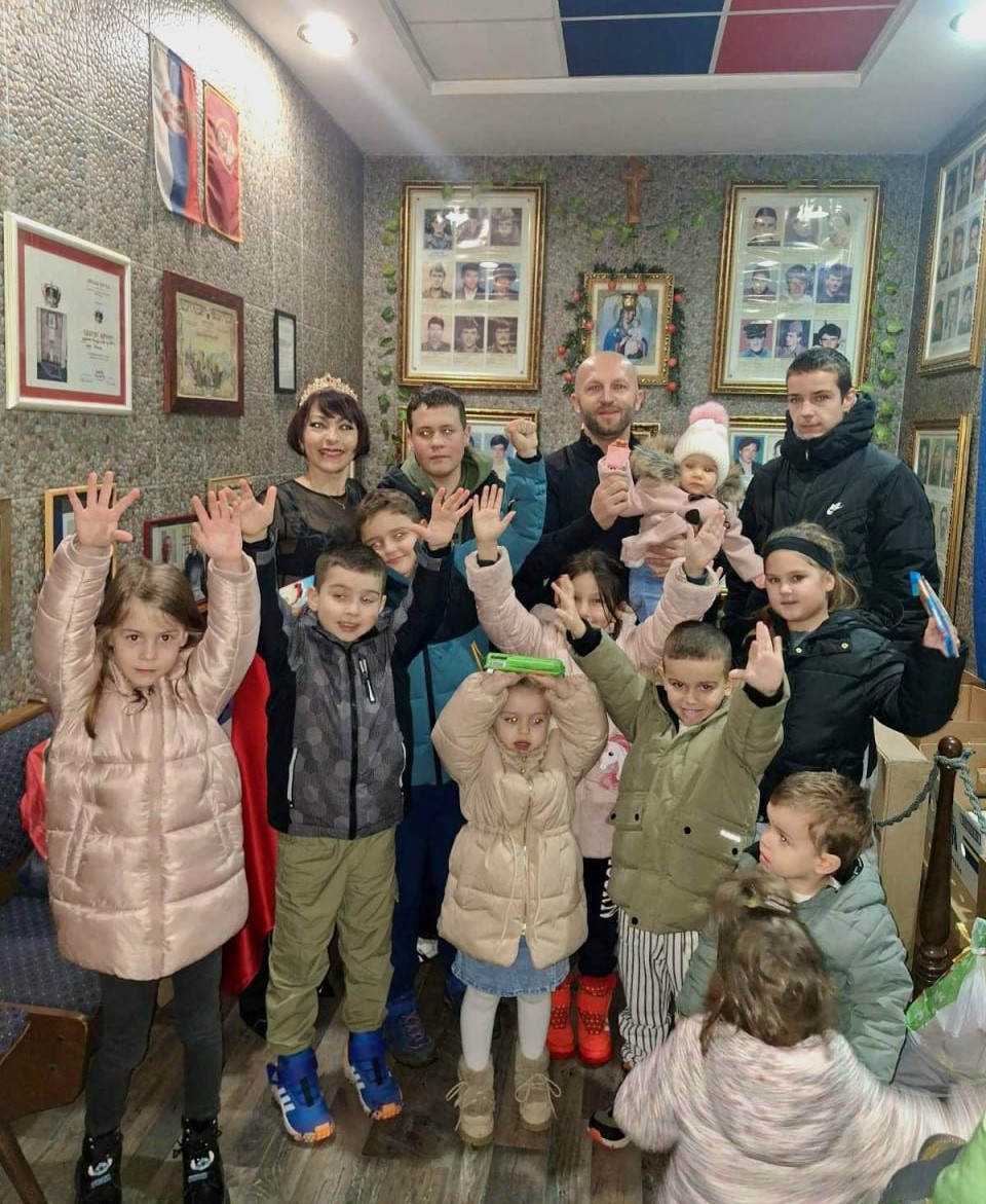 “В штабе организации “Общества борцов в войнах 1990 года города Вальево» совместно с председателем Александром Павичем были подготовлены и вручены новогодние подарки детям и внукам ветеранов Балканских войн. Дети общества - активные участники различных акций “БОЕВОГО БРАТСТВА”, в том числе они рисовали рисунки, посвященные летчикам-героям”, - рассказывает Ольга Литвина. - ”После раздачи подарков детям для взрослых членов общества была проведена викторина, посвященная России. Взрослые отвечали на вопросы о России, о ее географии, о значительных военных событиях.